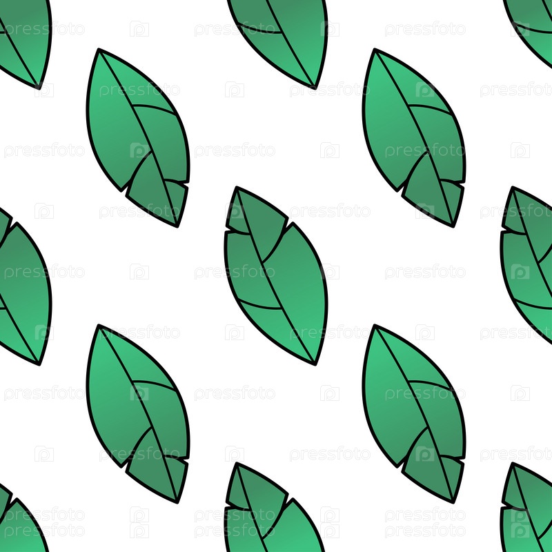 Бесшовный природный узор с зелеными листьями на белом фоне. Свежесть, органическая, вегетарианская концепция