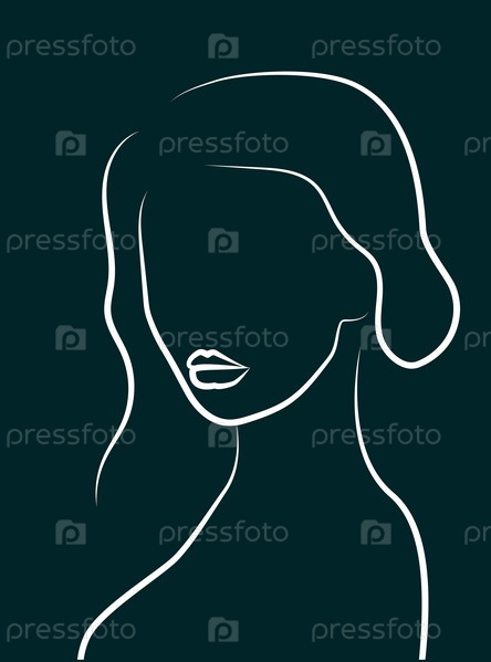 Простой силуэт женщины с полными губами. Белая линия на зеленом. Портретная линия в минималистическом стиле. Векторная иллюстрация