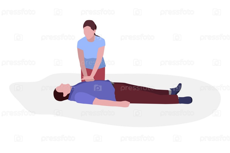 Первая помощь. Девушка оказывает упавшему на улице мужчине сердечно-легочную реанимацию. Спасение жизни пострадавшего