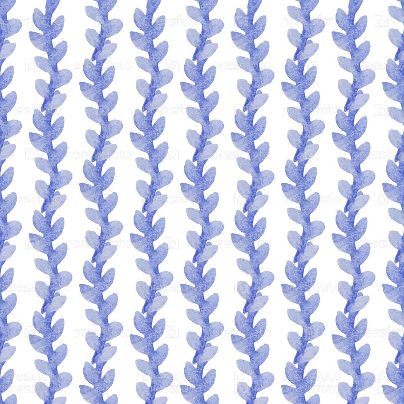 Бесшовный узор с нарисованными вручную акварельными голубыми ветвями с листьями на белом. Лето, весенний сезон. Органическая, натуральная концепция свежести для текстиля, печати и т. д