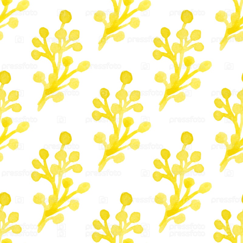 Бесшовный узор с нарисованными вручную акварельными желтыми ветвями с ягодами на белом. Органическая, натуральная, свежесть для текстиля, печати и т. д. Иллюстрация