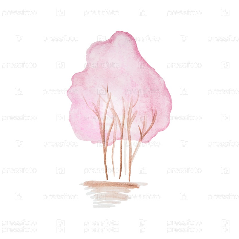 Нарисованный вручную акварельный кустарник с пышной розовой листвой, изолированной на белом