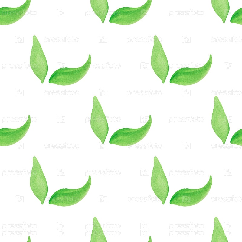 Бесшовный узор с нарисованными вручную акварельными зелеными листьями на белом. Абстрактная фоновая иллюстрация. Органическая, натуральная концепция свежести для текстиля, печати и т. д