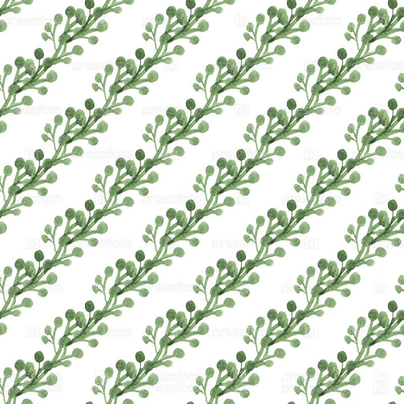 Бесшовный узор с нарисованными вручную акварельными зелеными ветвями с ягодами на белом. Органическая, натуральная, свежесть для текстиля, печати и т. д. Иллюстрация
