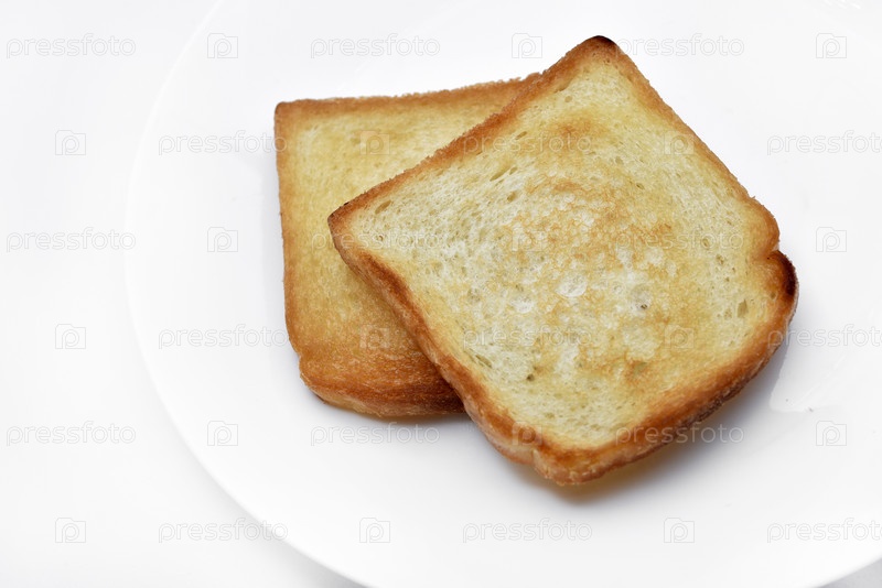 Жареный тост на белой тарелке. Печеный хлеб для бутербродов. Веганская еда