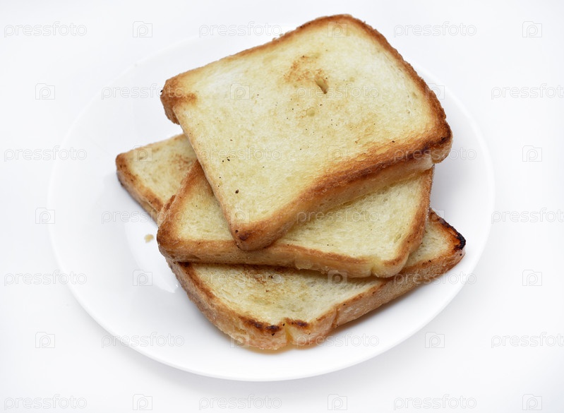 Жареный тост на белой тарелке. Печеный хлеб для бутербродов. Веганская еда