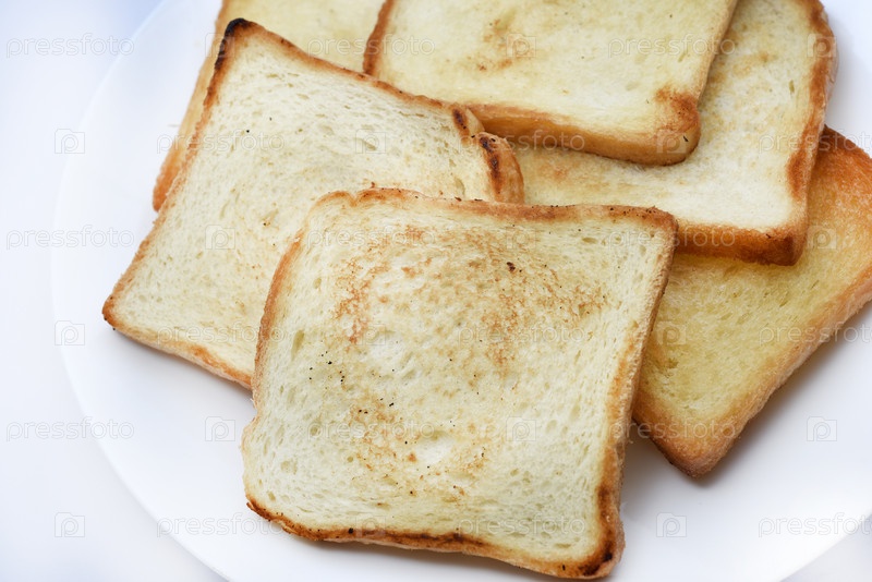 Жареный тост на белой тарелке. Печеный хлеб для бутербродов. Веганская еда