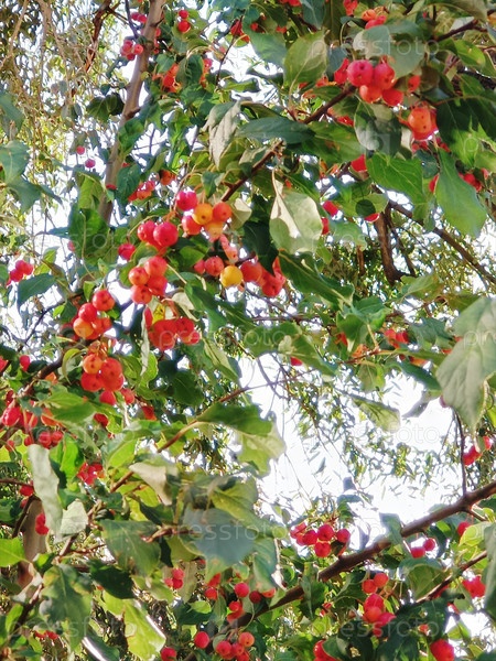Осенью яблочки-ранетки ярким днем на ветке