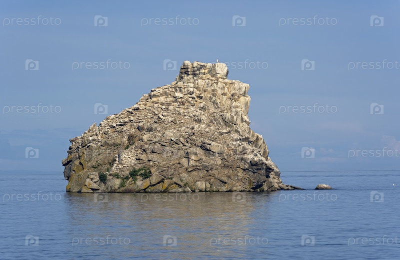 Бакланий камень - место нахождения единственной на южном Байкале колонии большого баклана. Большая Байкальская тропа. Озеро Байкал. Иркутская область, Россия. Август