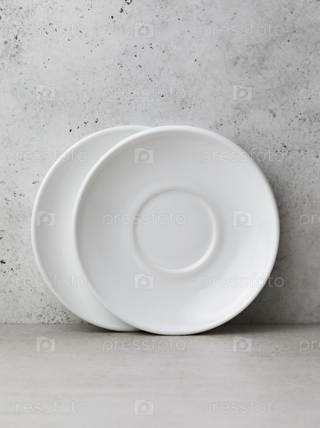 Два белых керамических блюдца на столе