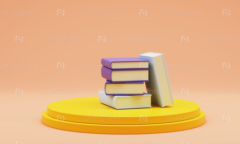 Разноцветные книги на бежевом фоне, пустое место для текста, 3д иллюстрация