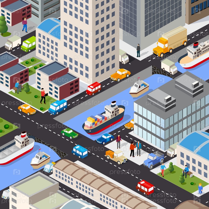 Изометрическая 3D-иллюстрация городского квартала с домами