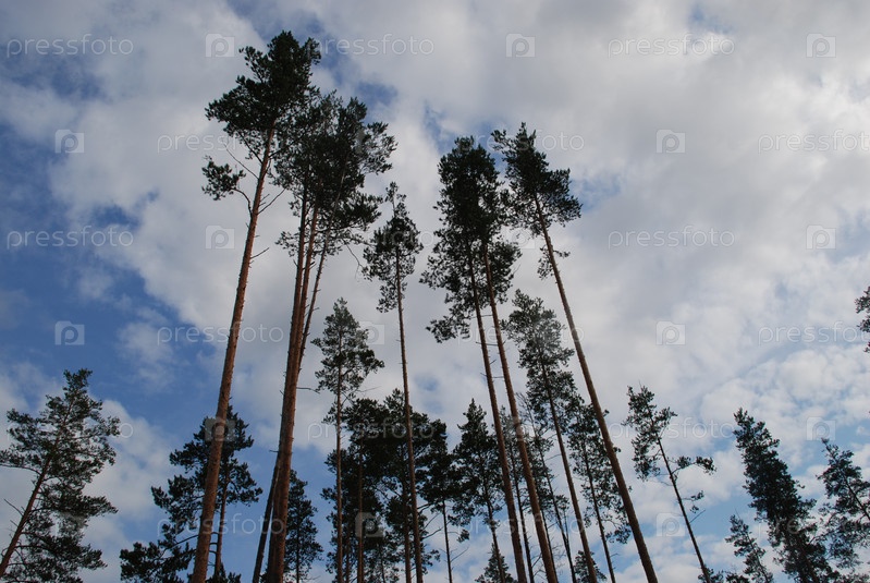 Высокий сосновый лес под пасмурным небом