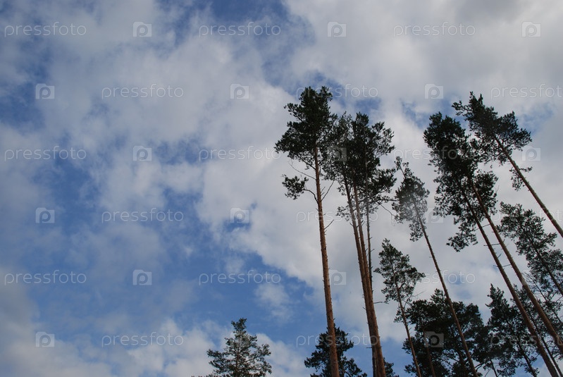 Высокий сосновый лес под пасмурным небом