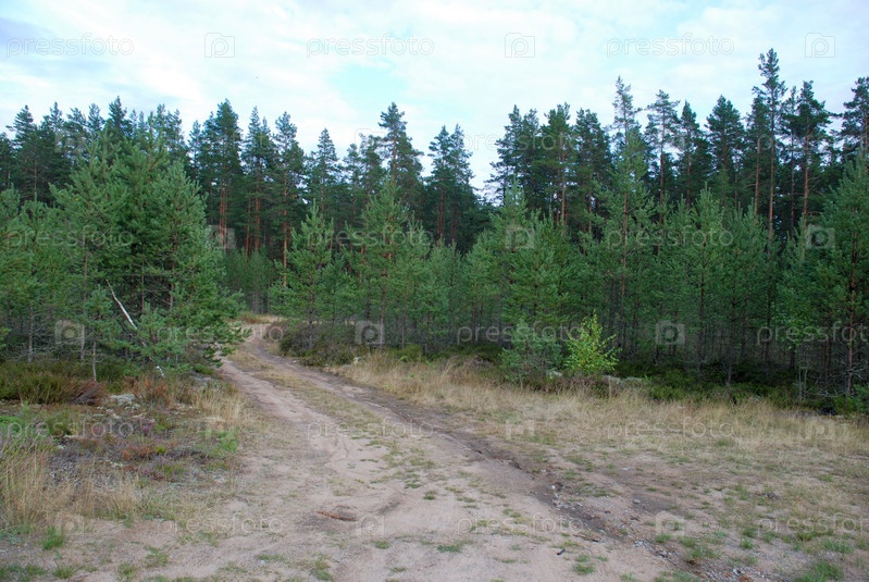 Песчаная дорога посреди хвойного леса
