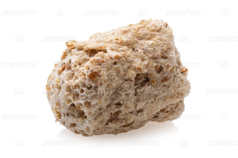 Одна гранула пшеничных отрубей изолирована на белом фоне, полная глубина резкости