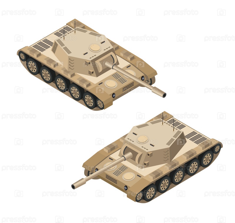 Набор армейских вооруженных танковых дивизий изометрического вооруженного военного транспорта