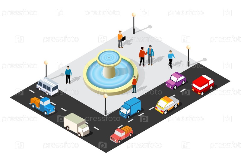 Изометрическая 3D-иллюстрация городского квартала с домами
