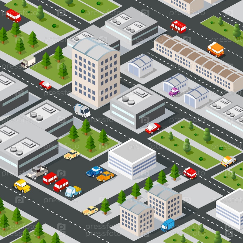 Изометрическая 3D-иллюстрация городского квартала с домами
