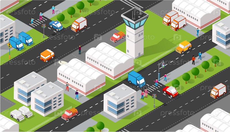 Изометрическая 3D-иллюстрация городского квартала с домами