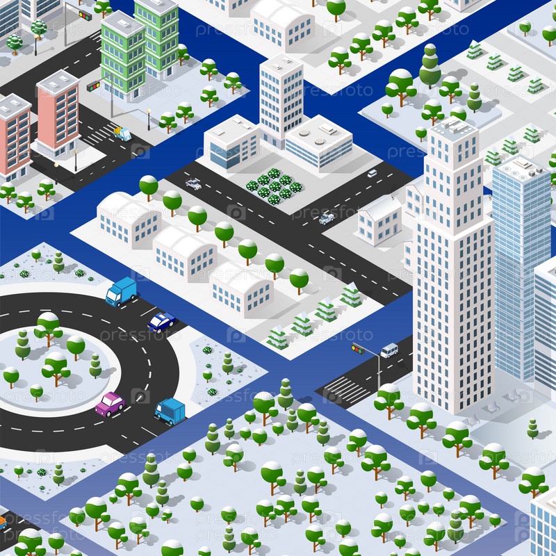Изометрический набор блоков модуля районов городской застройки