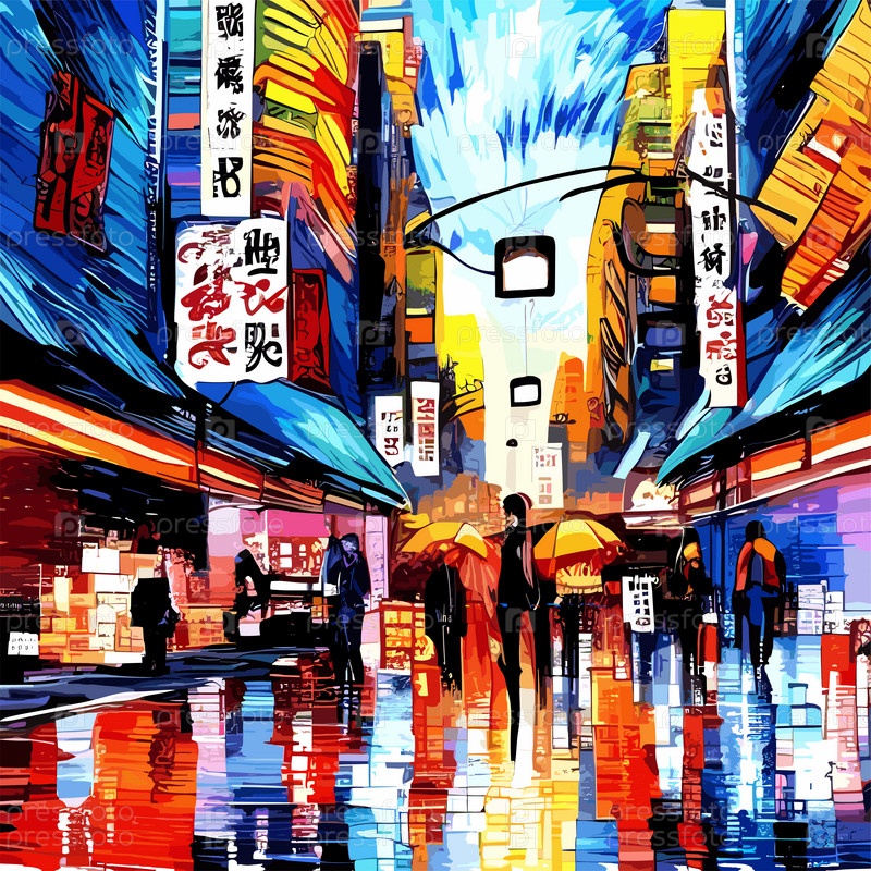 Векторная абстрактная летняя иллюстрация городского района с множеством домов