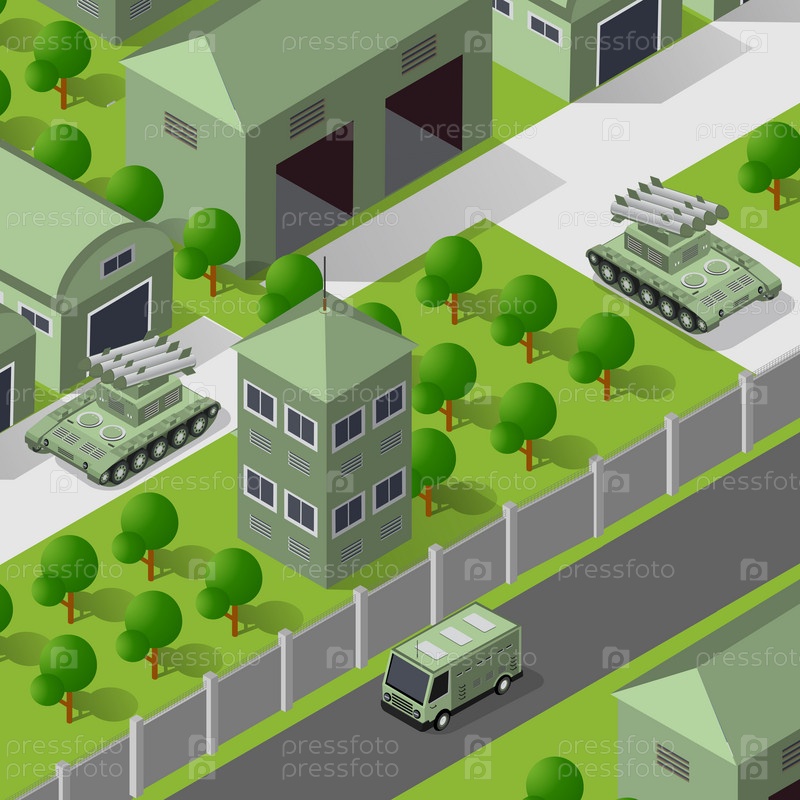 Фон 3D иллюстрация армии вооруженных отрядов изометрические вооружённые войска