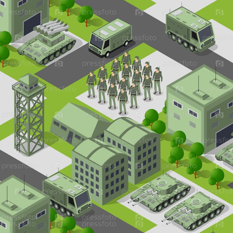 Фон 3D иллюстрация армии вооруженных отрядов изометрические вооружённые войска