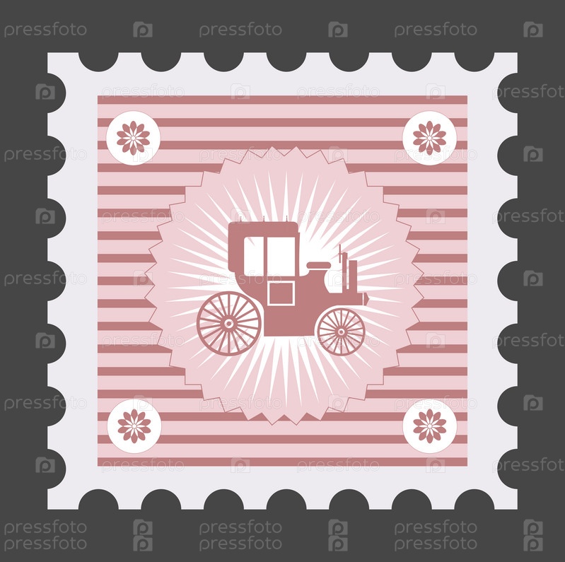 Старая почтовая марка с изображением транспортных средств