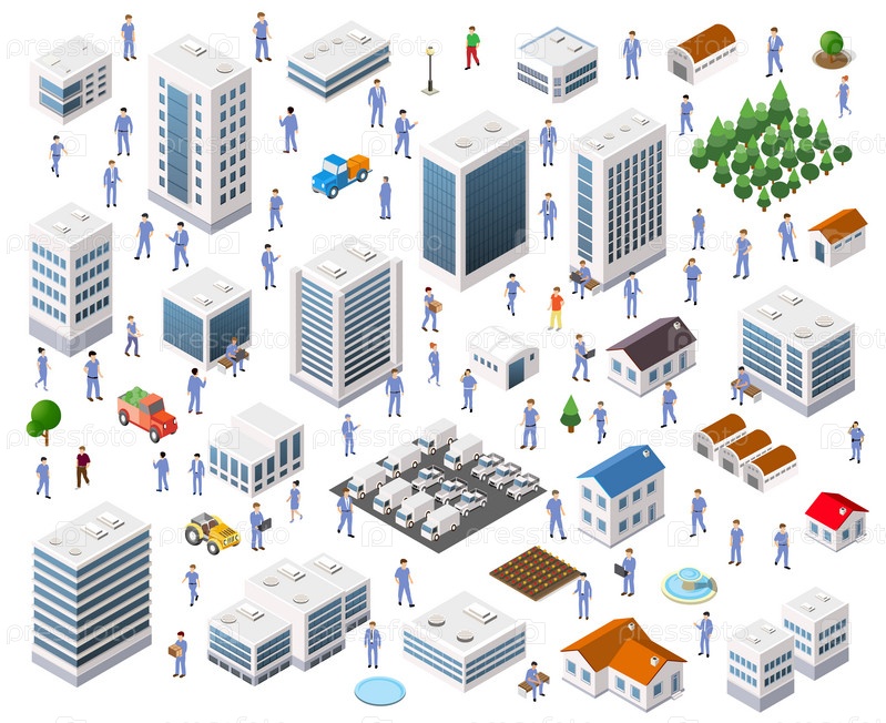 Изометрический набор Уличный перекресток 3D иллюстрация городского квартала