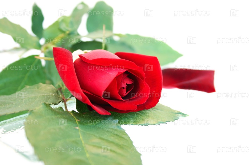 Красная роза крупным планом на белом фоне