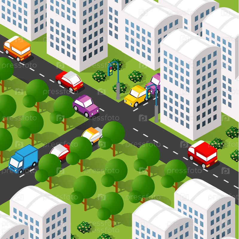 Изометрическая 3D-иллюстрация городского квартала с домами