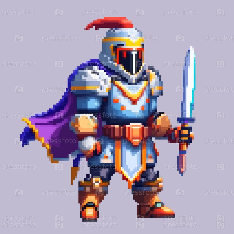 Робот-пиксельный персонаж для 8-битных игровых пейзажей, фон для аркадной видеоигры