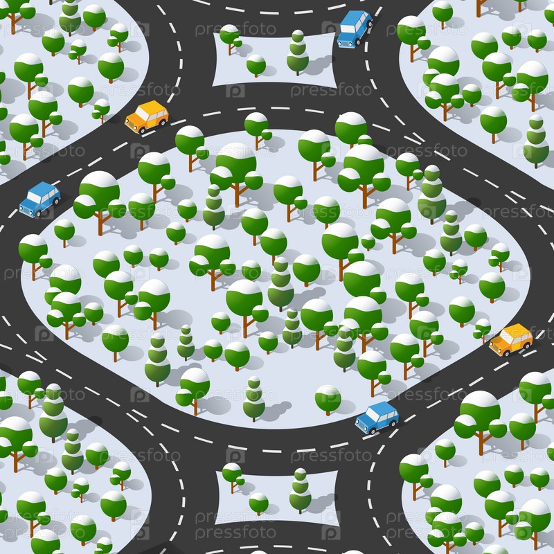 Поворот на пригородном шоссе. Изометрический вид проекции зимы