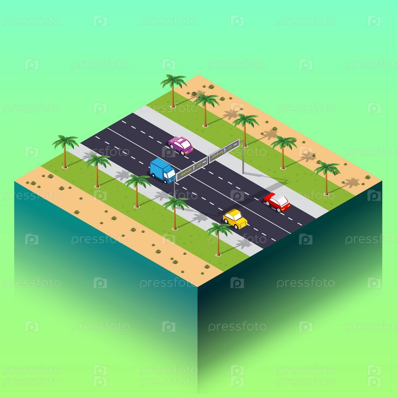 Изометрический вид сверху на 3d иллюстрации городского транспорта