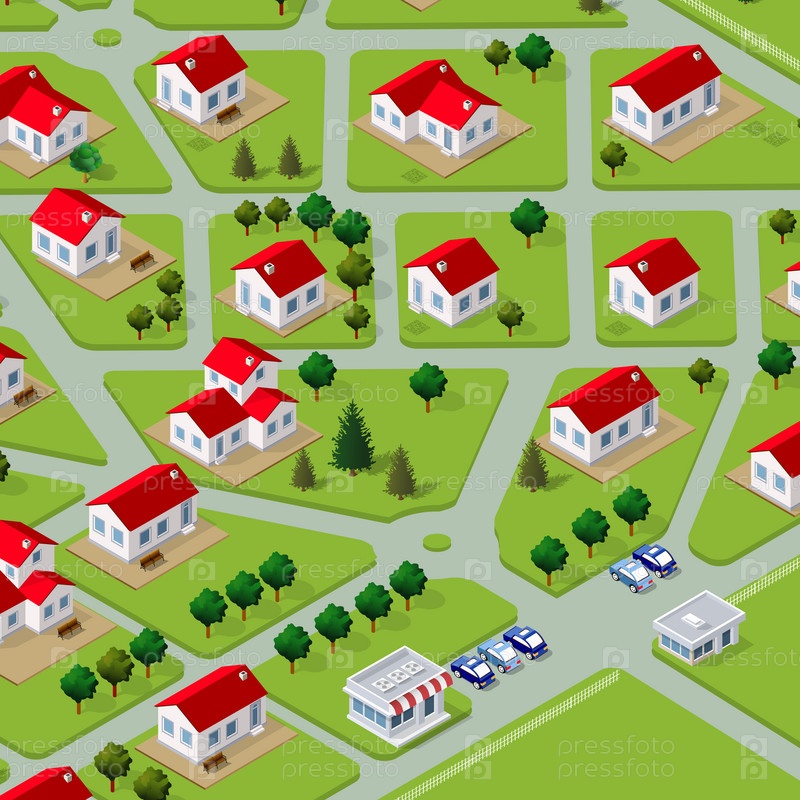 Взгляд на изометрическую 3D-иллюстрацию коттеджного таунхауса