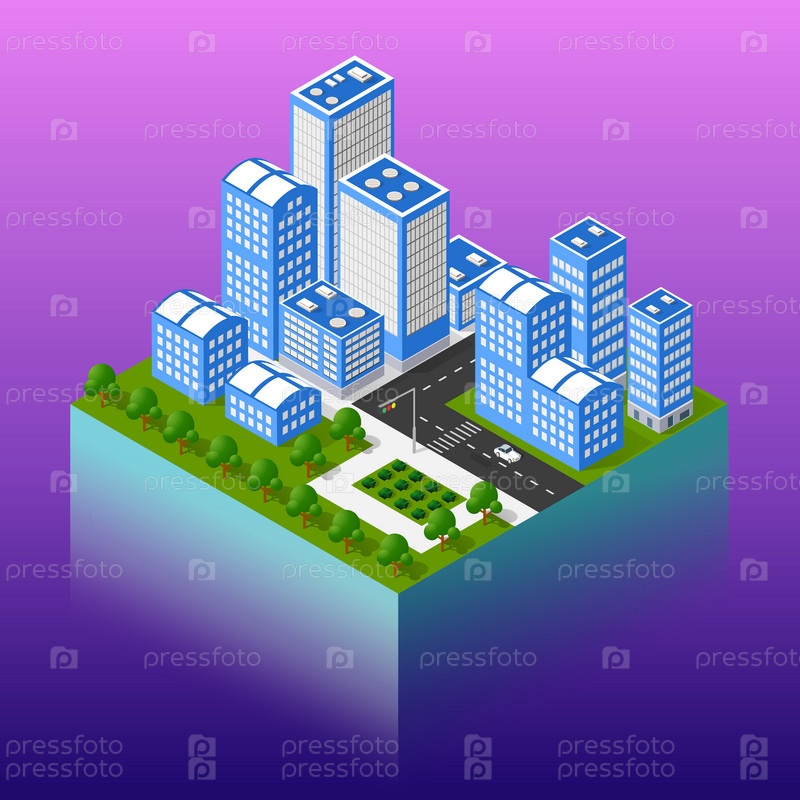 Ночной фон изометрический умный синий 3D иллюстрация