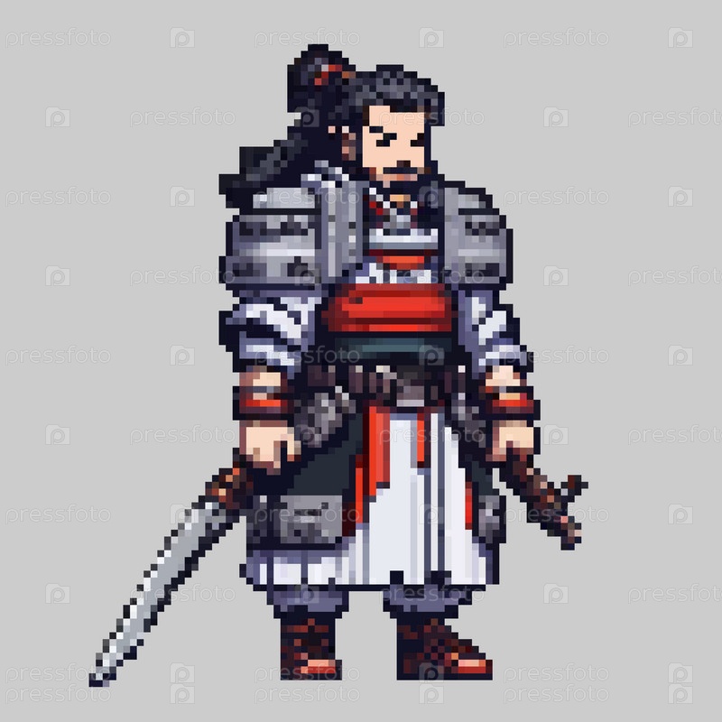 Пиксельный персонаж японского самурая-воина для 8-битной игры