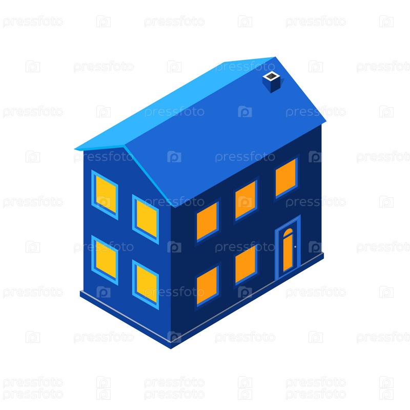 Ночное городское здание, квартира, жилой дом, изометрическая 3D-иллюстрация
