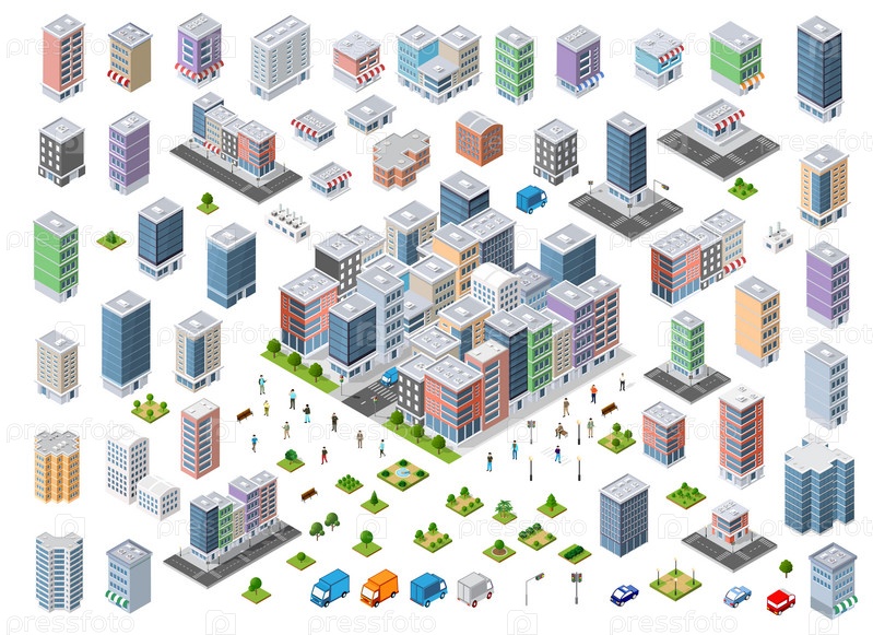 Здесь расположено множество городских 3D-зданий в различных формах
