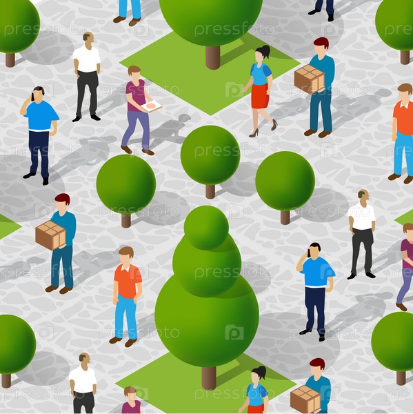 Сцена городской жизни. Люди гуляют и отдыхают в парке