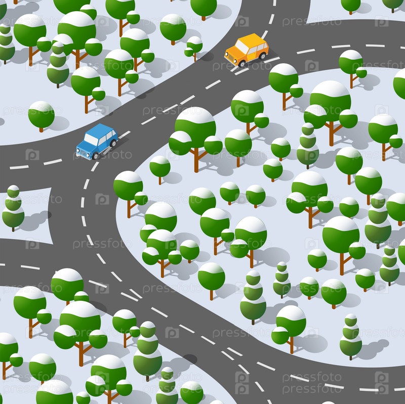 Изометрическая проекция зимнего пейзажа. Природный аспект