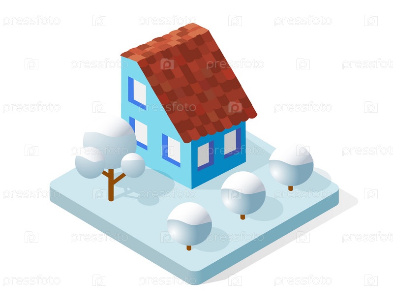 Рождественский город изометрический городской зимний квартал в снегу