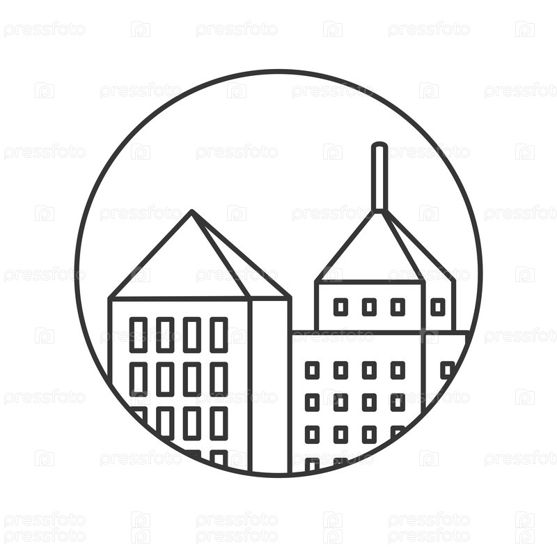 Линейный силуэт города логотип знак линии значок линии здания