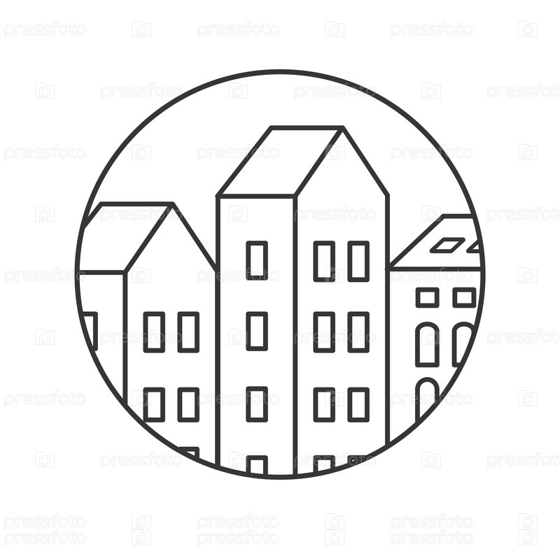Линейный силуэт города логотип знак линии значок линии здания