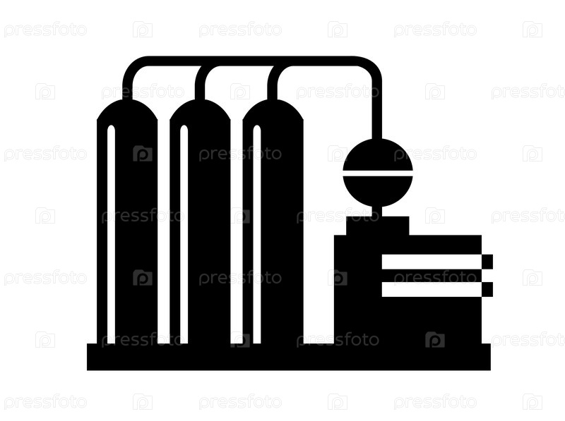 Силуэт нефтяной скважины, логотип промышленного объекта, городской