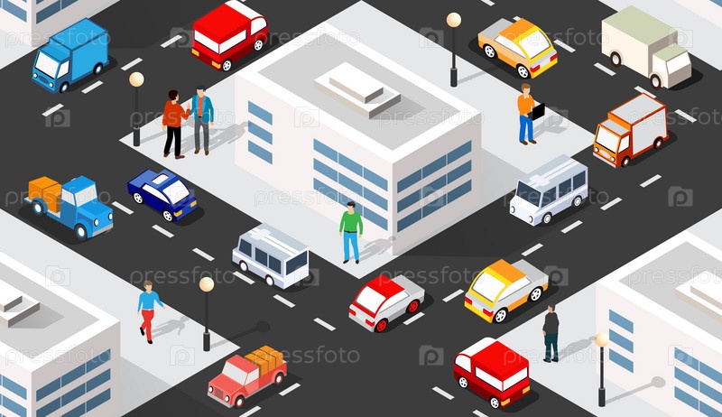 Изометрическая 3D-иллюстрация городского квартала с домами