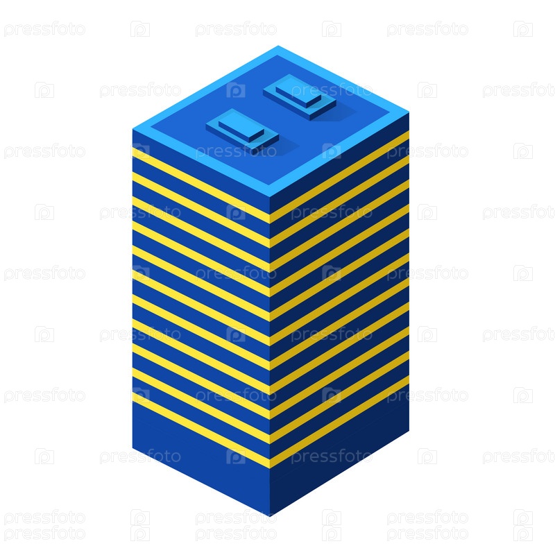 Ночное городское здание, квартира, жилой дом, изометрическая 3D-иллюстрация