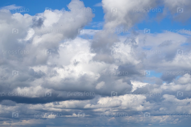 Облачное небо. Фон голубого неба с густыми облаками над горизонтом