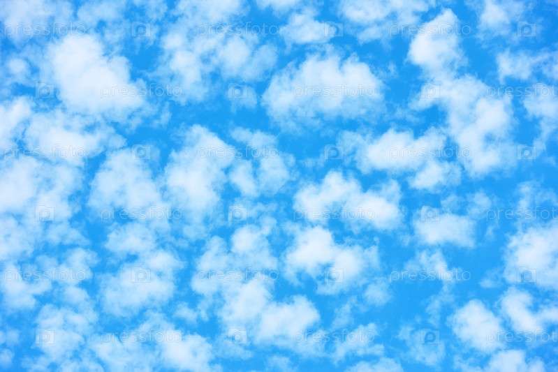 Голубое небо с множеством маленьких белых облаков